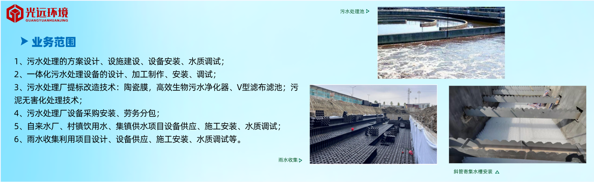 公司致力于污水處理事業(yè)的研究發(fā)展,主要從事:污水處理場、自來水廠、污水處理站、村鎮(zhèn)飲用水、集鎮(zhèn)供水等項目的設(shè)計、新建、提標(biāo)改造和運行維護及相關(guān)工作。